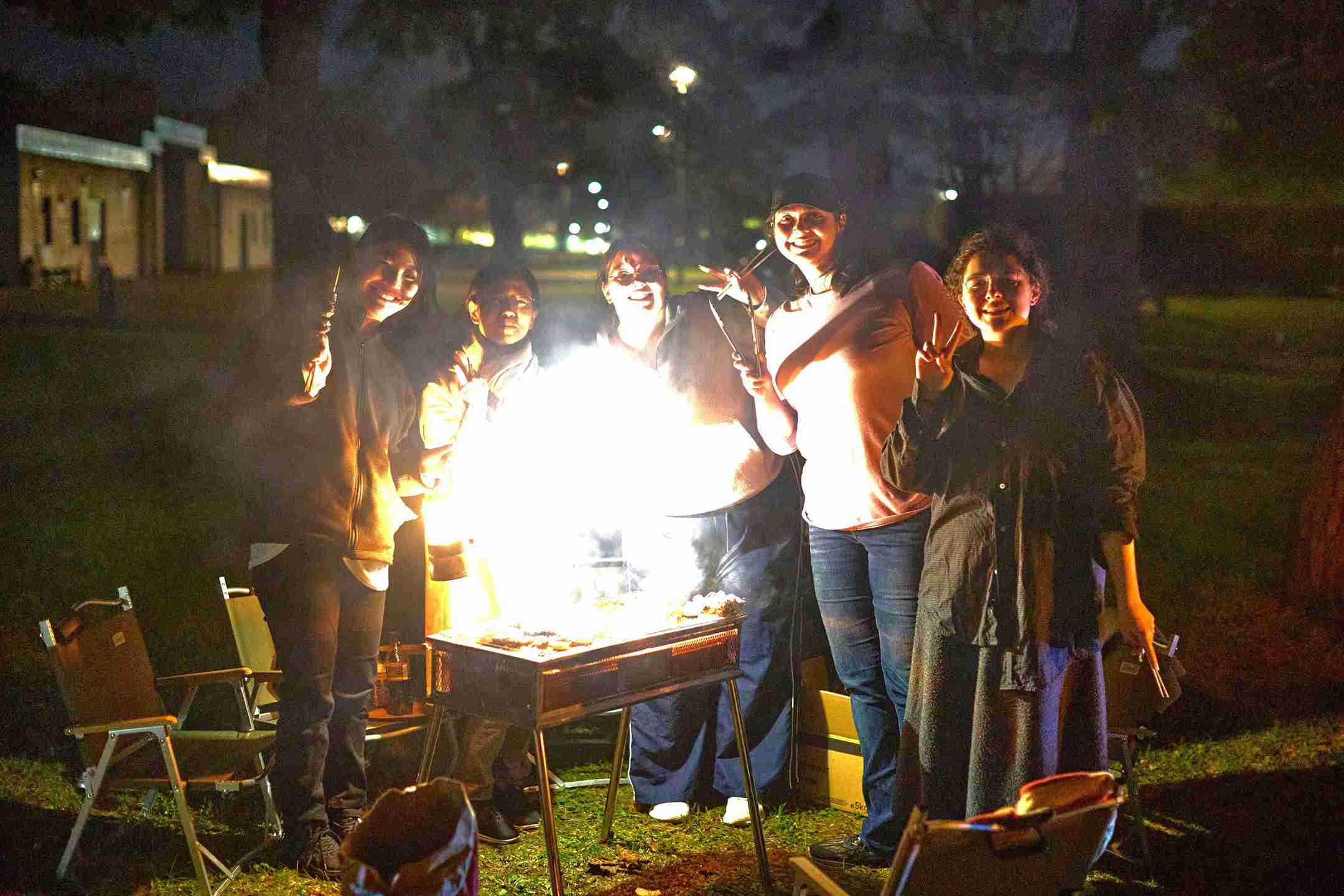 日が暮れてきたら、道の駅で手に入れた地元の食材を囲んでバーベキュー。